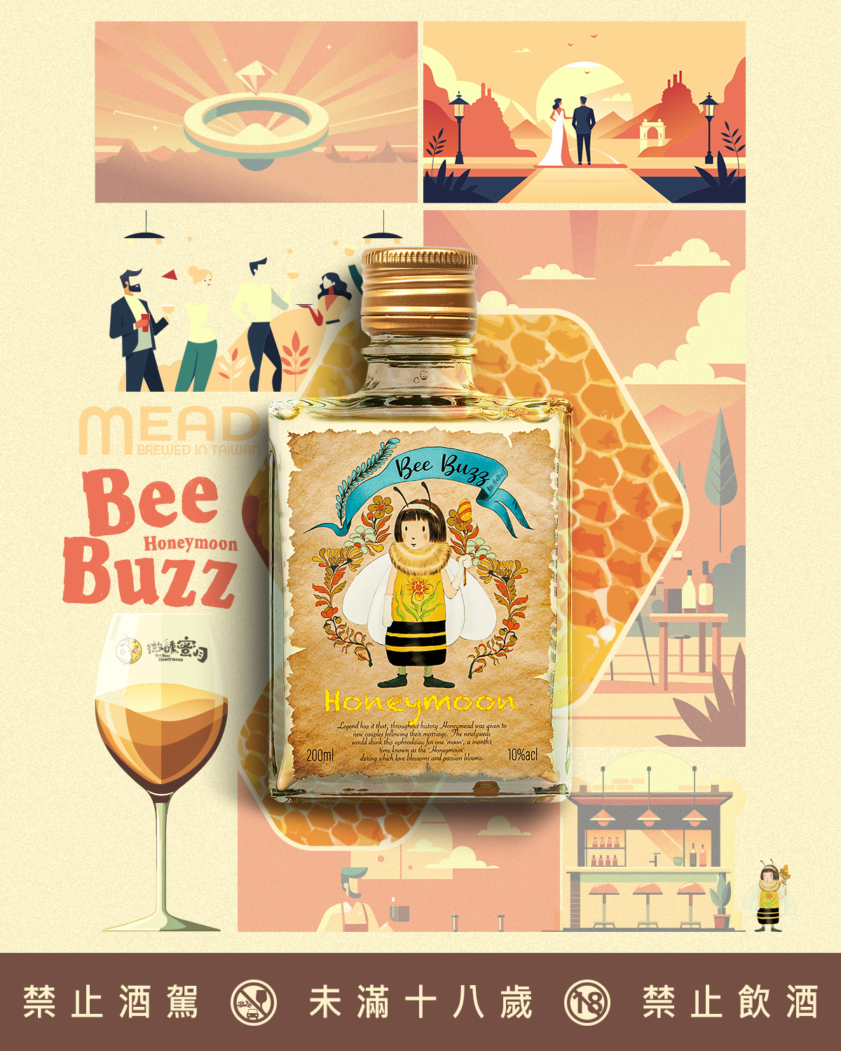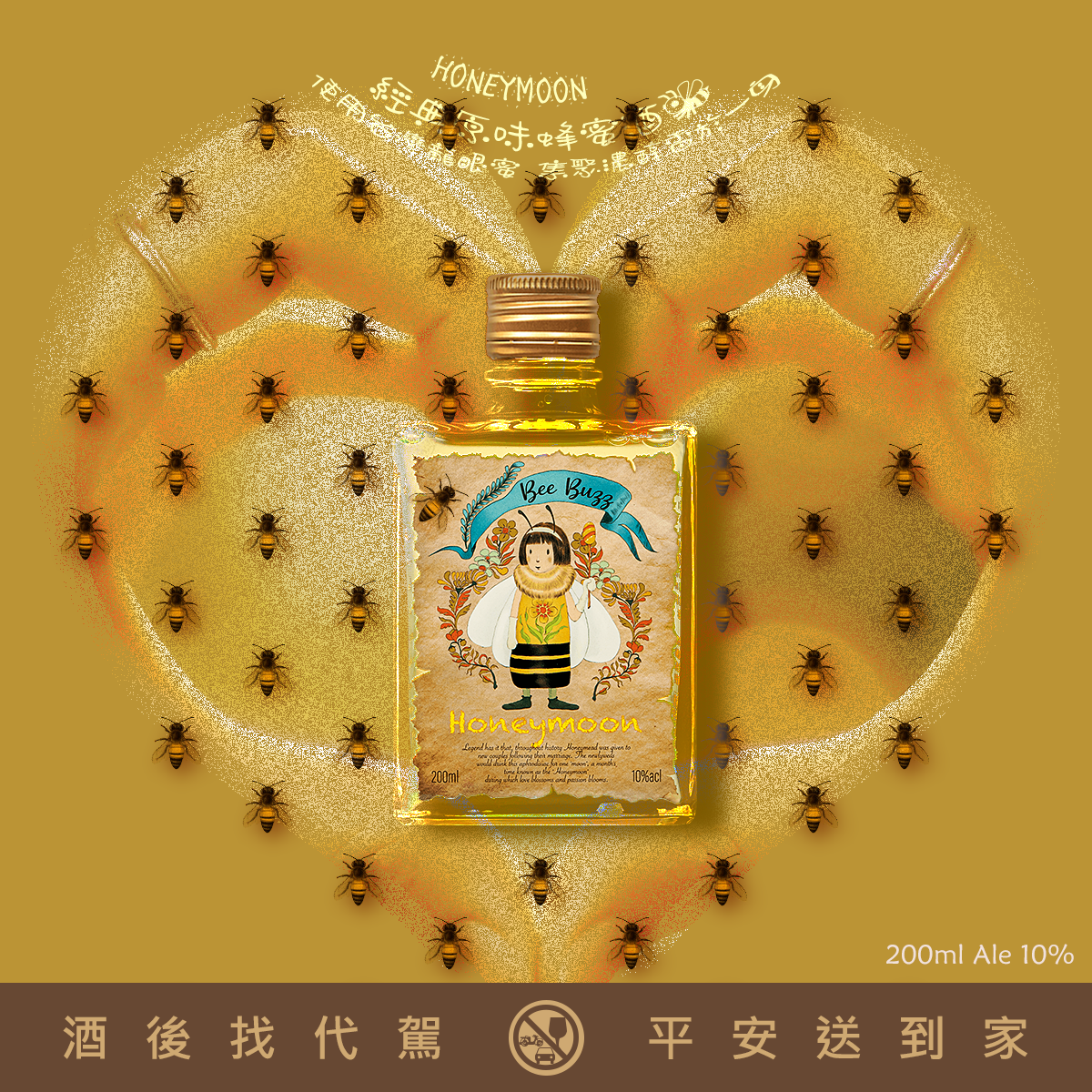 BeeBuzz微醺蜜月蜂蜜酒,使用台灣在地青農的龍眼蜜,集聚濃、醇、香於一身,經過長時發酵與熟成,甜度以及氣味也是所有蜂蜜種類中最濃郁最甜的蜜種,散發著獨特的龍眼花香氣,不帶果酸味也不易結晶,口感溫順,受到許多人的喜愛。