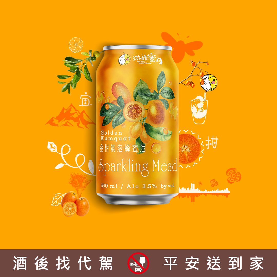 宜蘭金棗碰上蜂蜜酒,新鮮口感直送到家,充滿清爽氣泡酒感,融合清新柑橘香氣,襯托出蜂蜜酒中微酸甜蜜的清新尾韻。
