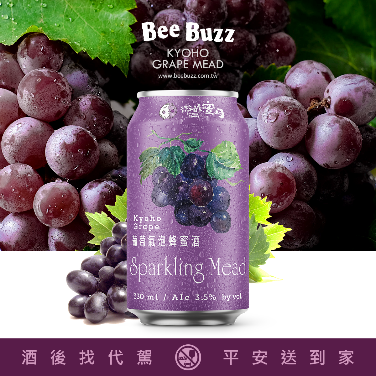 彰化葡萄碰上蜂蜜酒,新鮮口感直送到家,開瓶時芳香紫紅葡萄汁液伴隨入口輕爽揚升的氣泡感,襯托出蜂蜜酒甜蜜香醇尾韻。