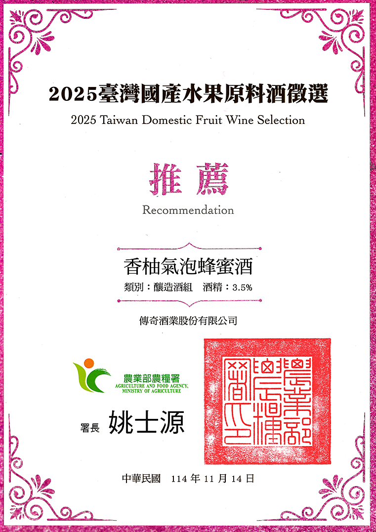 【台灣FIRDI食品工業發展研究所,微醺蜜月系列共同技術合作開發】