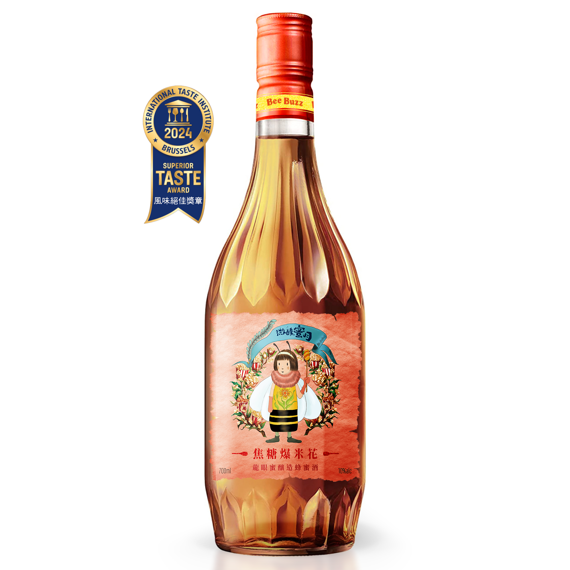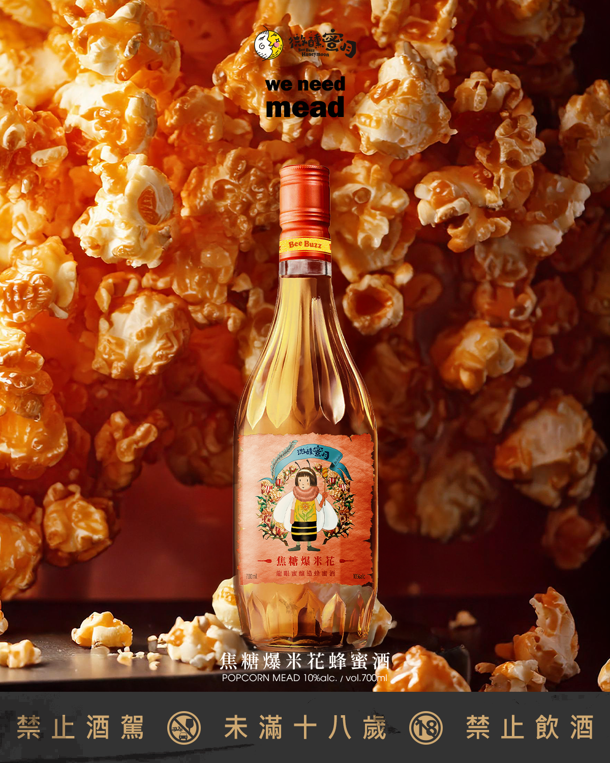 BeeBuzz微醺蜜月—焦糖爆米花蜂蜜酒,嚴選台灣在地青農龍眼蜜,集聚濃、醇、香於一身,經過長時發酵與熟成,甜度與氣味同樣是所有蜂蜜中最濃郁、最甜美的蜜種,散發獨特的龍眼花香,不帶果酸、不易結晶,口感溫潤細緻,深受喜愛。